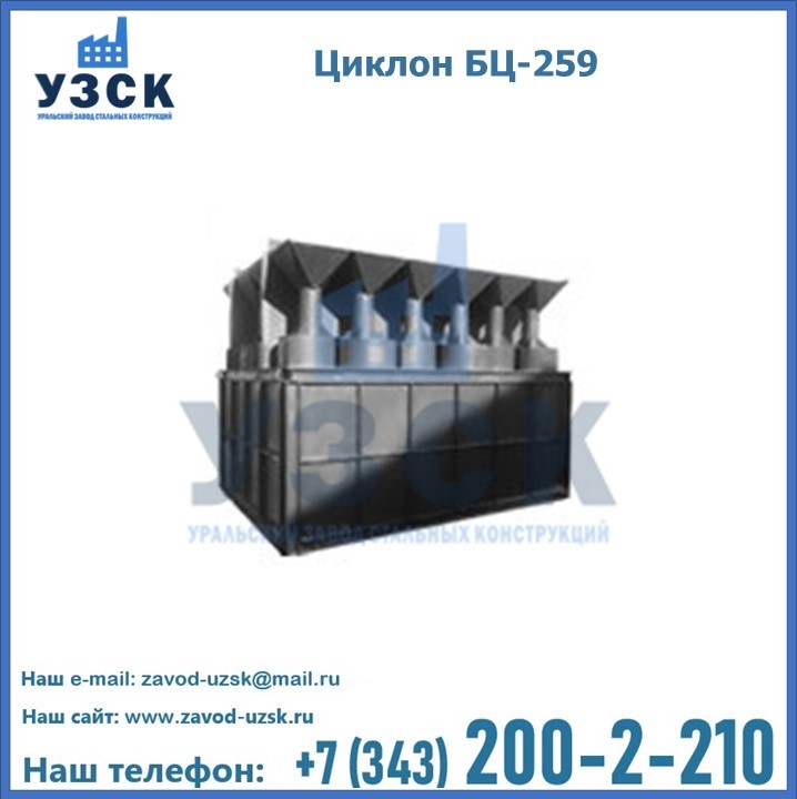 Приобрести качественное оборудование, в том числе, циклоны БЦ-259, можно в компании УЗСК в Кульсарах. Мы предлагаем долговечную и надежную продукцию по приемлемой цене. Заказать и купить циклоны или другие изделия высокого качества можно через сайт Уральского Завода Стальных Конструкций, или позвонив по указанному в разделе «Контакты» телефону.