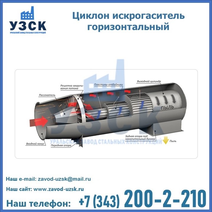 Горизонтальные циклоны-искрогасители ЦГ поставляются в Кульсарах в сборке или же транспортными единицами для последующей сборки, если предназначены для работы с большими объемами.