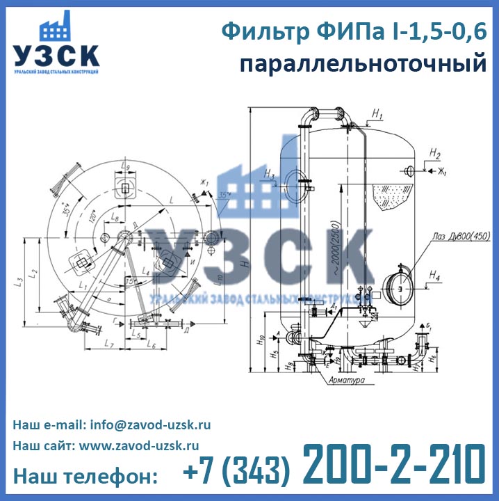 Уральский Завод Стальных Конструкций – ведущий производитель фильтрационного оборудования, осуществляющий изготовление параллельноточных фильтров ФИПаI 1,5-0,6 в соответствии требованиями ГОСТ. Получить консультацию по подбору оборудования, уточнить актуальные цены фильтров ФИПа I 1,5-0,6 в Кульсарах и сроки их изготовления, запросить технические характеристики и сертификационные документы Вы можете, связавшись с менеджерами отдела продаж завода УЗСК по координатам, указанным в разделе «Контакты». Если Вы уже определились с выбором и хотите купить фильтр ФИПа I ступени очистки прямо сейчас, заполните форму онлайн заказа размещенную ниже.
