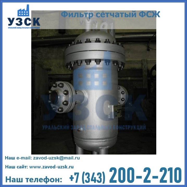 Очистку перекачиваемых жидкостей на предприятиях нефтяной, пищевой, горнорудной, фармацевтической и других отраслей промышленности эффективно выполнять с помощью жидкостного сетчатого фильтра — емкостное оборудование цилиндрической формы со съемной крышкой и элементом фильтрации внутри. Оснащенные им всасывающие линии насосных станций и установок защищены от проникновения твердых частиц в функциональные узлы гидравлической системы. Оборудование служит для перекачивания токсичных, агрессивных и иных эмульсий, суспензий, жидкостей. Купить фильтр сетчатый жидкостный ФСЖ в Кульсарах с гарантией производителя предлагает «Уральский завод стальных конструкций». Мы выполняем проектирование и изготовление ФСЖ по индивидуальным требованиям (климатическая зона, транспортируемая жидкость).