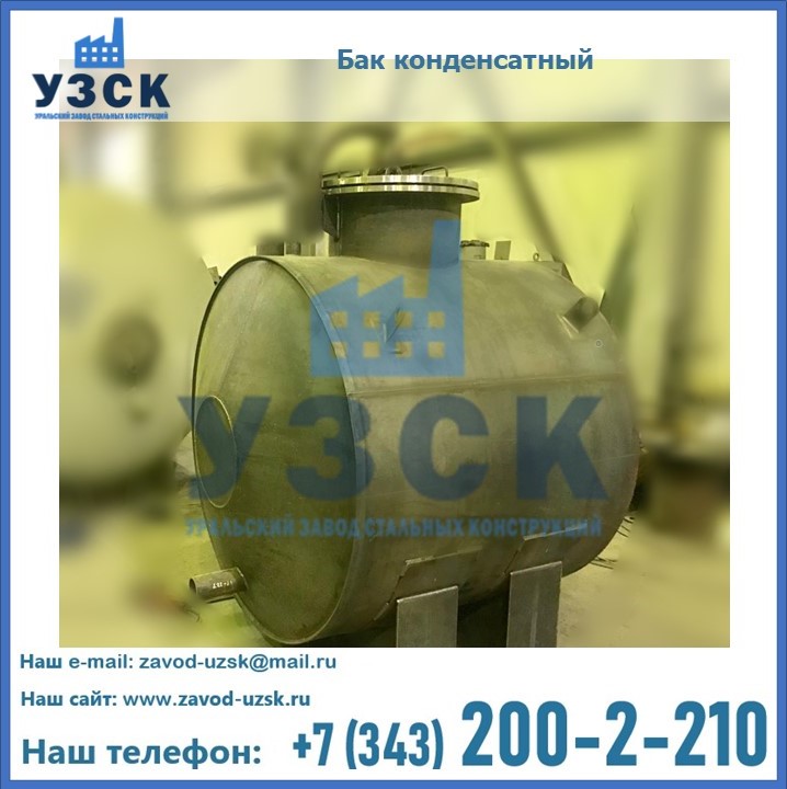 Многие заказчики стараются конденсатные баки купить по выгодной цене в компании «УЗСК» в Кульсарах. Причин несколько. Производитель поставляет емкости с полным комплектом лестниц, площадок обслуживания. Бак после гидравлических испытаний покрывают специальной внутренней и наружной краской, накладывают теплоизоляцию или наваривают крепеж для навески минматов. Условия теплоизоляции согласуются с заказчиком.