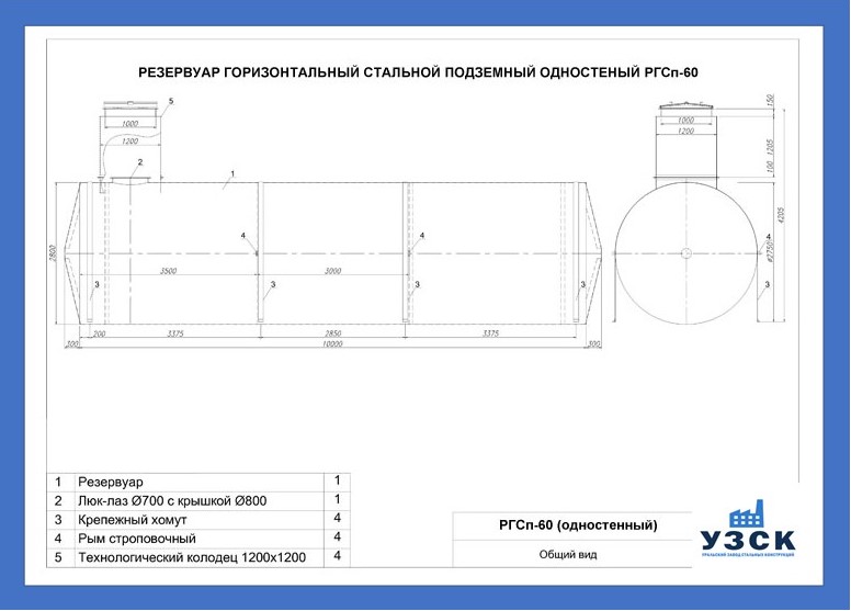РГСДн-60: горизонтальный резервуар двустенный наземного расположения;